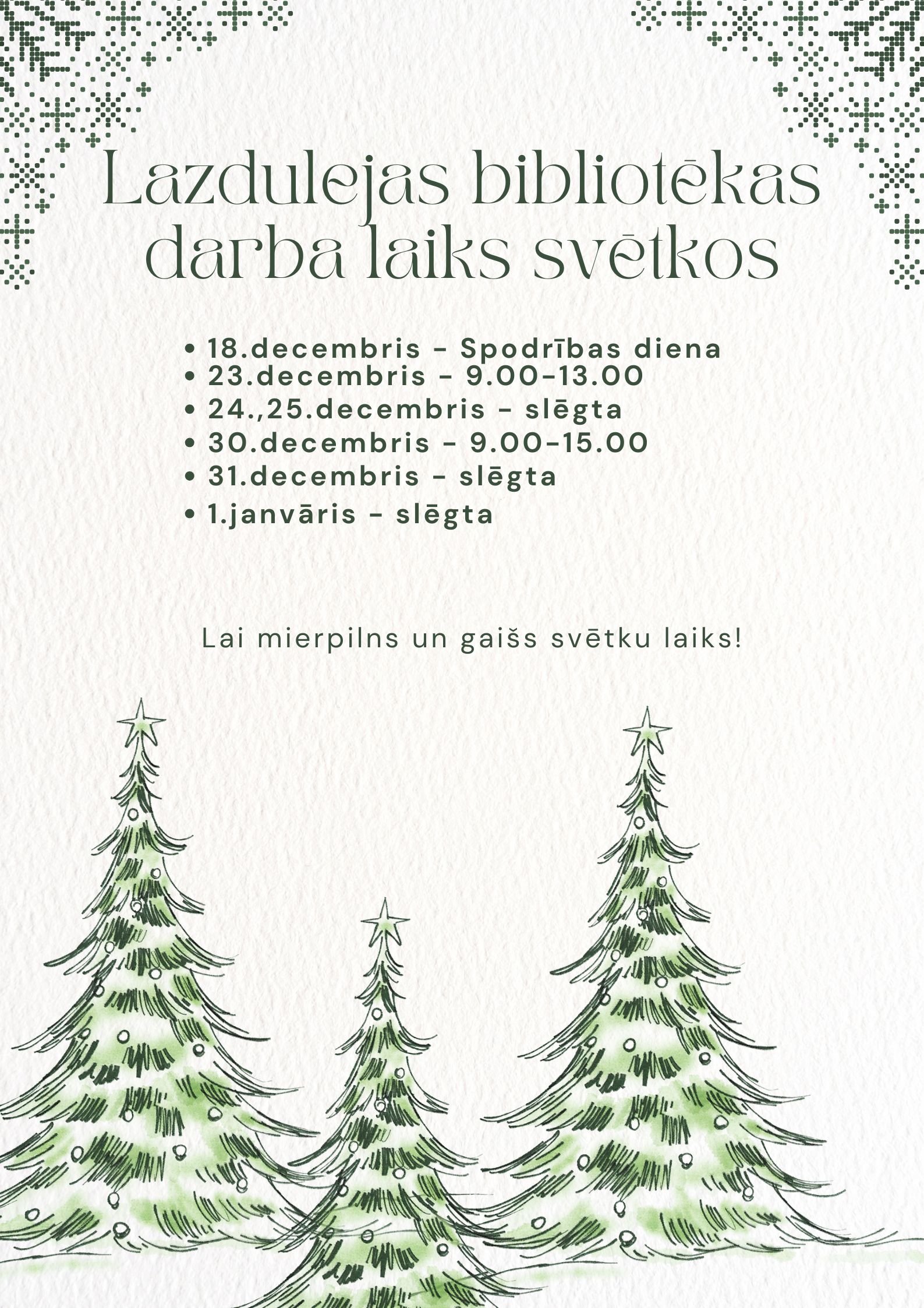 Uz tikšanos Jaunajā gadā Lazdulejas bibliotēkā!