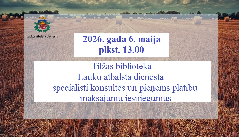 Tilžas pagasta bibliotēkā notiekošie pasākumi ir publiski. Informējam, ka pasākumu laikā uzņemtās fotogrāfijas var tikt publicētas mājas lapā un sociālajos tīklos. Ja nevēlaties, lai Jūs vai Jūsu bērnu fotogrāfē, lūdzu, par to informējiet bibliotekāru.