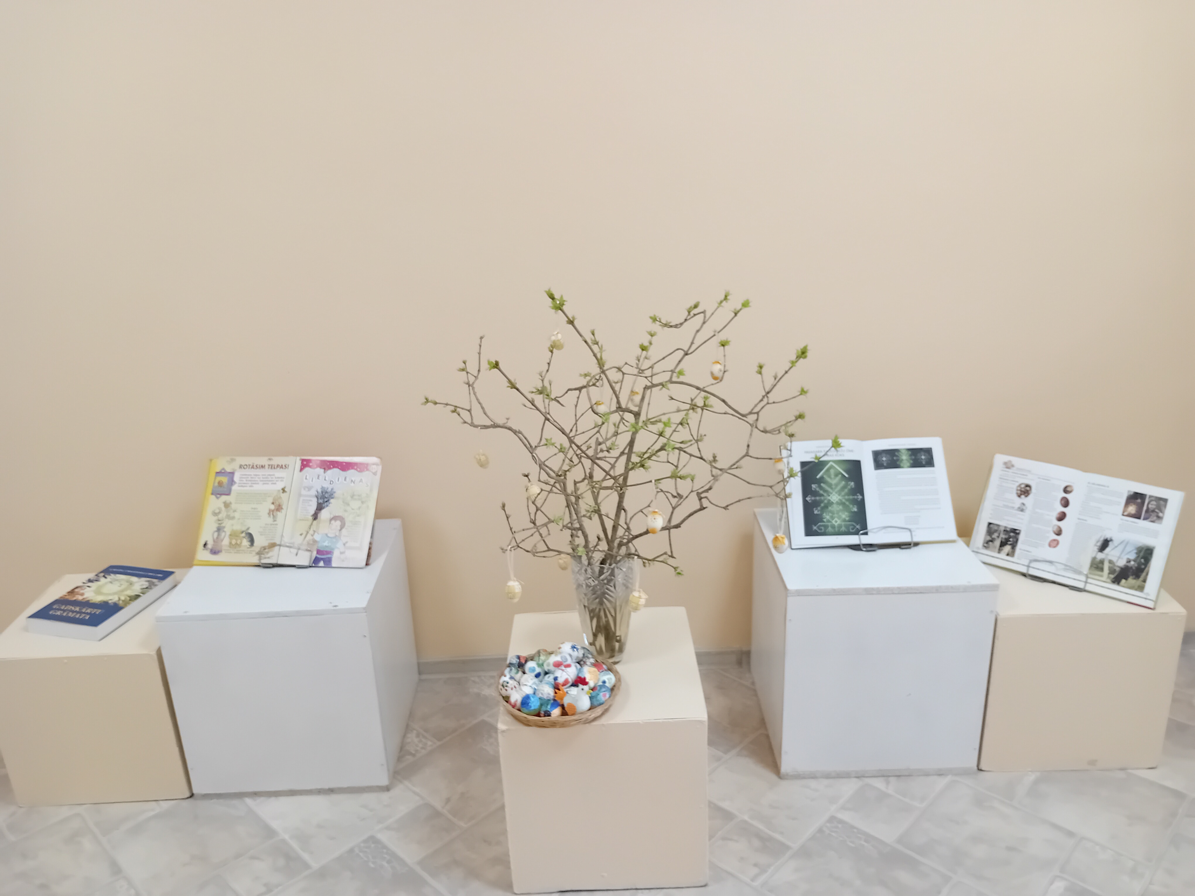 Bibliotēkā turpinās Ineses Jansones amatniecības darbu izstāde