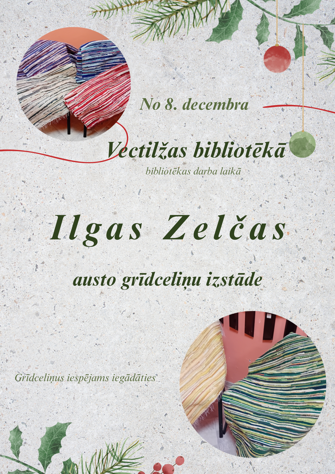 No 8. decembra bibliotēkā aplūkojama Ilgas Zelčas austo grīdas celiņu izstāde