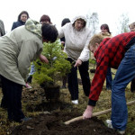 4.maijs Latvijas Republikas neatkarības atjaunošanas 20. gadadiena Vīksnā.Koku stādīšana bērnu rotaļu laukumā 2010.dada 4.maijā. /M.Melnes foto/