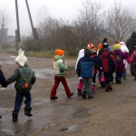 Mārtiņdienā  bērnudārza vecākie audzēkņi skolotājas Janīnas vadībā ķekatu gājienā izstaigāja Vīksnas iestādes un veikalus, arī pagasta bibliotēku 10.11.10. /M.Melnes foto/