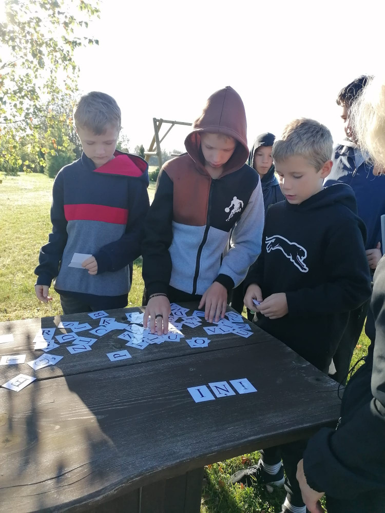 Nākošais uzdevums- no alfabēta burtiem jāsaliek koku nosaukumi, bet neierastā veidā- sāk likt no vārda pēdējā burta. Uzdevums nebūt nav viegls, ja līdzās nav špikera.