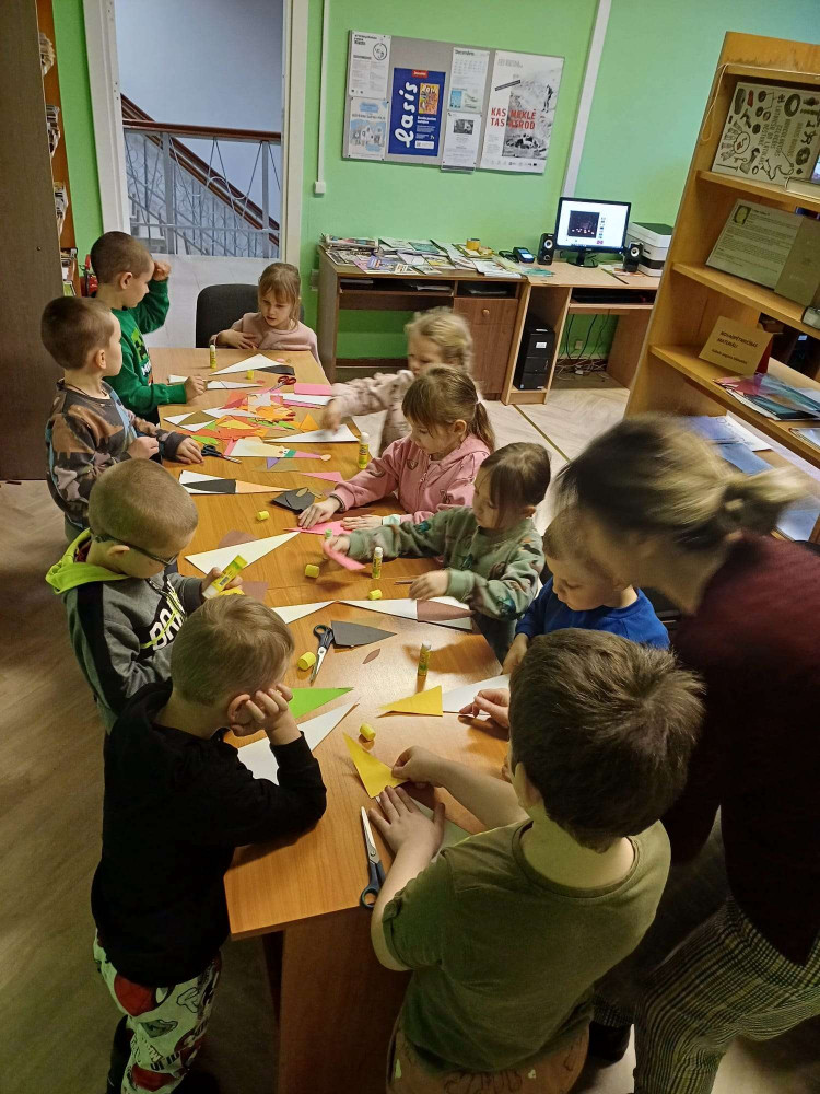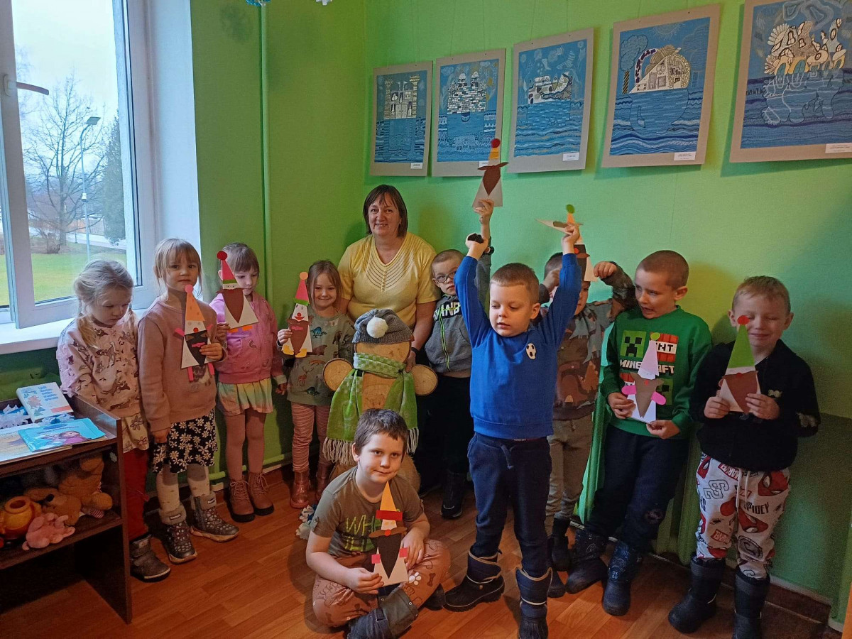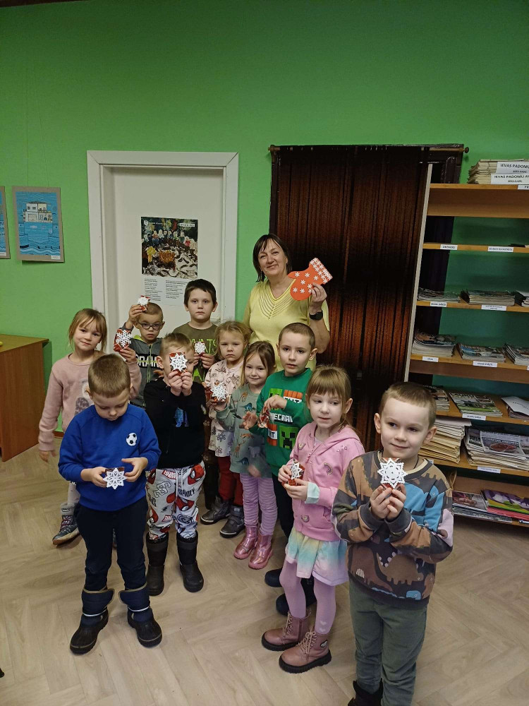 Bibliotēku apmeklēja Kubulu PII “Ieviņa” grupiņas “Bitītes” bērni un audzinātājas Ina un Ilona. Pasākuma tēma bija Ziema. Sākumā iepazināmies ar bērniem, katrs bērniņš nosauca savu vārdiņu un pastāstīja ar vienu vārdu, ar ko viņam saistās ziema. Tad bērni satikās ar sniegavīru, kurš bija bēdīgs, jo viņu vēl nav iespējas savelt no sniega. Tad bērni noklausījās pasaku par zaķīti, kurš nevarēja sagaidīt ziemu un devās pats to meklēt. Nākamais, ko bērni paveica bija Rūķīša izgatavošana. Katrs bērniņš pats izveidoja savu rūķi, kurš pēc pasākuma devās ar viņu kopā uz bērnudārzu. Pēc radošās aktivitātes bērniem tika piedāvāta fiziskā aktivitāte, vajadzēja pa vienai sniega piciņai piepildīt trauku. Bērni tika sadalīti divās komandās un katrs rindas kārtībā ņēma un nesa sniega piciņas no sniega lauka un lika bļodā. Protams, bērniem patika fiziski padarboties un trauks tika ātri vien piepildīts. Pēc aktivitātēm, katrs bērns saņēma mazu pateicības dāvaniņu, par aktīvo darbošanos bibliotēkā. Arī bērni man sagādāja pārsteigumu, viņu bija izgatavojuši jauku un skaistu apsveikumu tas bija mīļi un negaidīti. Paldies bērniem un audzinātājām par sadarbību.